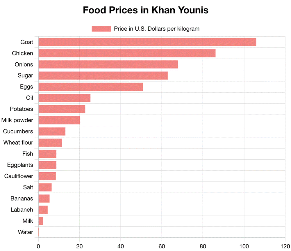 Prices of commodities in Khan Younis, Gaza Strip. Data was collected on June 15th, 2025. Source: World Food Programme Index.